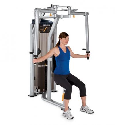 動作要領:練習時,背部必須緊靠靠背,用力時由肘部用力。由于臀、背緊靠著,所以只有胸部肌肉可以用上勁。用健身房夾胸機鍛煉,95%的效果都作用在胸大肌上,而且這個鍛煉動作不會對身體的其他部分造成任何傷害。