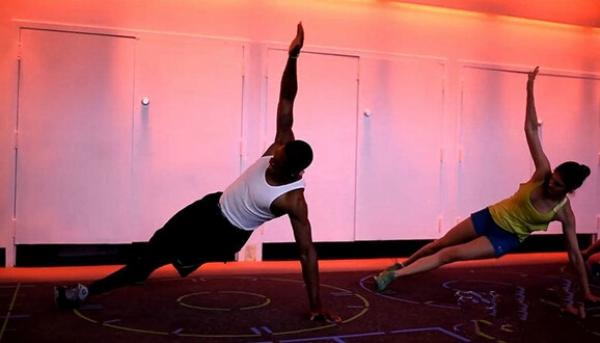 在這里,人們根據(jù)亮起的燈光而改變開合跳、深蹲跳起、舉鐵的姿勢(shì)和落腳點(diǎn),單臂劃船、側(cè)板、登山等各式俯臥撐,或是持球迅速投向亮起的燈圈……總之是將一切健身房常見的動(dòng)作都游戲化了,通過光和聲音指導(dǎo)你“通關(guān)”。