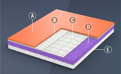 VINYLSPORT MVinylsport M多層預制PVC運動地板。減震性能參數符合EN 14904,使其成為室內多功能運動設施的理想選擇。 提供完美性能的多層結構