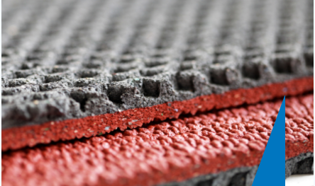 跑道由兩層配方各不相同的固體橡膠共硫化組成。硫化工藝保證了兩層之間的分子鏈結(jié)形成了連續(xù)式無縫材料片