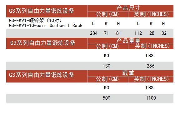 同時還可提供:5對啞鈴架/G3-FW90(單層,未顯示于圖中)